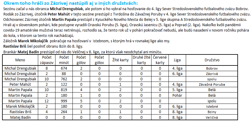 (vyhodnotenie jari 2020 nie je, nakoľko sa kvôli pandémii covid-19 jarná časť neuskutočnila a celý ročník 2019/2020 bol anulovaný)